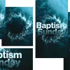 This graphic, designed for an event, features the words “Baptism Sunday” with an energetic water splash effect in a vibrant blue palette, conveying a sense of renewal and celebration. Perfect for promoting upcoming baptism ceremonies, this design can enhance church media strategies by encouraging community participation. Utilize this engaging visual to elevate your church’s event promotion efforts.