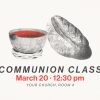 The design features a minimalist communion class announcement with a rustic cup of red wine and a loaf of bread, using muted tones and a pop of red for emphasis. Perfect for promoting upcoming classes, teaching series, or small group invitations within your church community. Clear and inviting, it’s a great asset for effective church media that helps boost participation and engagement.