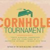 The design features a retro-style cornhole board graphic with bold orange and green text against a soft yellow burst and beige background, perfect for a church event announcement. It’s ideal for promoting youth ministry fundraisers, community game nights, or social engagement posts. Utilizing church media like this helps boost participation and fosters a fun, welcoming atmosphere for your congregation.