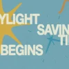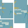 Retro-inspired announcement graphic features bold white text, playful sunburst and clock illustrations, and a cheerful blue and yellow color palette to highlight Daylight Savings Time. Perfect for social media reminders, church slides, or email updates to keep your congregation in the loop. Make important updates stand out with eye-catching church media that boosts engagement and communication.