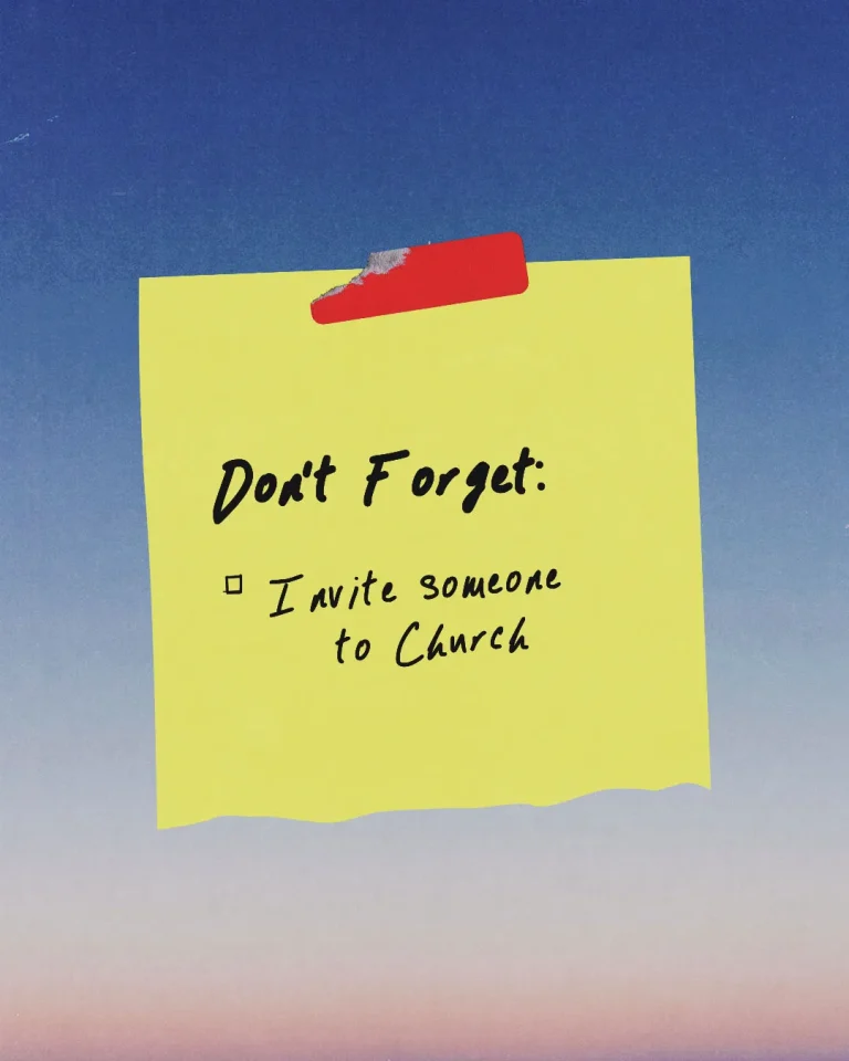 View All Access PlansTransform your church media with this friendly reminder graphic featuring a sticky note design that encourages congregation members to invite someone to church. This versatile church media template combines casual handwritten typography with vibrant colors, making it perfect for social media posts, bulletin inserts, or digital announcements that promote outreach and community growth.