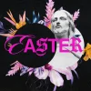 A vibrant clash of tradition and modernity, this Easter sermon graphic juxtaposes a classic statue in grayscale against a burst of neon-hued, tropical flora, all set upon a textured, dark background that amplifies the visual drama. The event’s title leaps out in a stylized, neon pink script that bridges the historic and the contemporary.