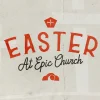 This church media template for Easter services at Epic Church harnesses a Grunge design style with its textured background and distressed typography, inviting the viewer to a vibrant celebration. The use of a muted color palette and bold, type-driven elements captures attention, making it perfect for the Spring season and Easter holiday.