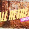 This vibrant graphic showcases a sunlit forest scene with bold text announcing a “Fall Retreat” for middle schoolers, capturing the essence of autumn. Perfect for church media, it enhances event promotion by visually engaging your congregation and encouraging participation in seasonal activities.