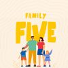This graphic features a cheerful family of four standing together beneath bold, yellow text that reads “Family Five,” set against a soft, wavy background. Churches can use this church media to promote family-focused events or messages, creating a warm and inviting atmosphere for their community.