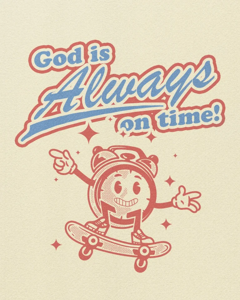 View All Access PlansThis graphic, featuring a playful clock character on a skateboard with the text “God is Always on time!” in retro colors, is perfect for a sermon series. Use it to visually enhance teaching series or as part of a promotional campaign to engage your congregation. This church media design brings a lively touch to any ministry setting.