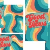 Inspire your congregation with this vibrant, retro-style church media graphic that boldly proclaims “Good News” against a dynamic backdrop of flowing, colorful waves. This eye-catching experimental design combines playful typography with a modern color palette that perfectly captures the joy and excitement of the gospel message for announcements, sermon series, or social media content.