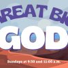 The sermon series graphic features bold, playful typography with “Great Big God” set against a warm, illustrated desert canyon backdrop, creating an inviting and uplifting mood. Perfect for promoting teaching series or Sunday service times, it helps churches connect visually with their community. Designed for easy customization, this graphic enhances engagement and clarity in church media.