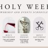 The Holy Week worship and events schedule graphic features a clean, minimalist design with soft neutral tones and symbolic imagery like palm leaves, wine, the crucifix, keys, and an empty tomb. Perfect for promoting sermon series, event announcements, or social media posts during this important church season. Utilizing church media like this helps churches clearly communicate key services and deepen engagement with their congregation.