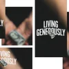 Bold white text reading “Living Generously” overlays a photo of open hands holding a rolled $100 bill, set against a dark background for a modern, impactful sermon series graphic. Perfect for teaching series on stewardship, stewardship campaigns, or social posts that encourage generosity. This church media design instantly grabs attention and sparks meaningful conversations on giving.