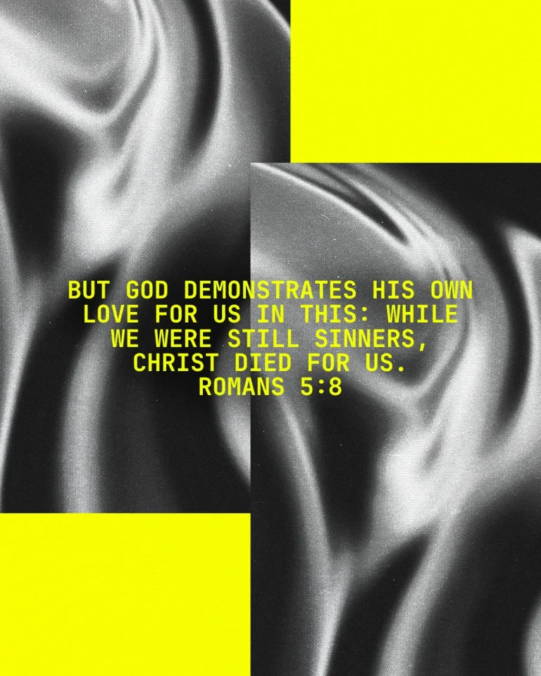 View All Access PlansModern sermon series graphic featuring bold yellow blocks and flowing black-and-white textures highlights Romans 5:8 in striking, contemporary typography. Perfect for teaching series visuals, social media encouragement posts, or sermon promo slides. Draw attention and foster deeper connections using creative church media.