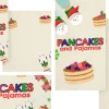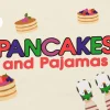 Colorful, playful event graphic features whimsical slippers, stacks of pancakes with berries, and festive snowflakes on a soft background, creating a cozy and fun vibe perfect for a church gathering. Ideal for promoting a family breakfast event, kids’ ministry activity, or seasonal engagement post. Draw more families and boost attendance by adding this inviting design to your church media.