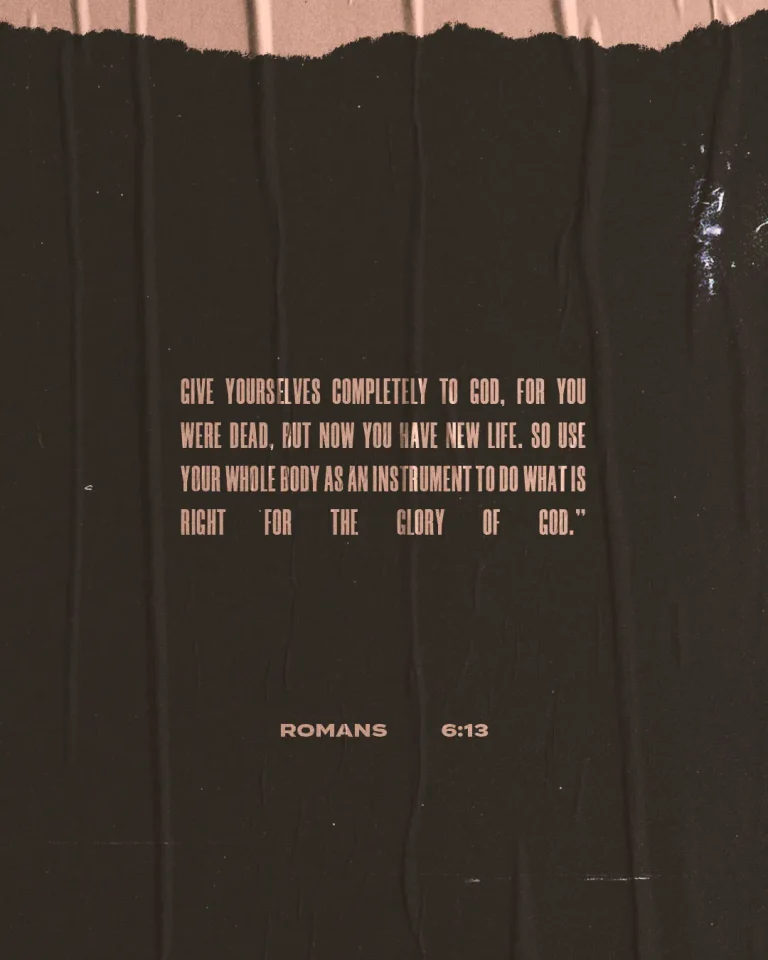 View All Access PlansThis vintage-inspired church media graphic features Romans 6:13 with a distressed, textured typography in soft pink against a dark, torn paper background. The gritty aesthetic combined with the powerful message about surrendering completely to God creates an edgy yet meaningful visual that speaks to spiritual transformation.