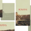 A vintage-inspired sermon series graphic features the iconic Roman Colosseum with bold red lettering, creating a historic and timeless mood. Perfect for sermon series artwork, teaching visuals, or promoting your Romans study on church social media. This design helps your church media stand out, sparking interest and deeper engagement in biblical teaching.