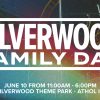The event graphic features bold white text announcing “Silverwood Family Day” over a colorful, grainy background of roller coaster tracks, creating a fun and energetic vibe. Perfect for promoting church outings, family events, or community gatherings, it helps churches connect with their congregation through engaging visuals. Using church media like this boosts event visibility and encourages greater participation in ministry activities.