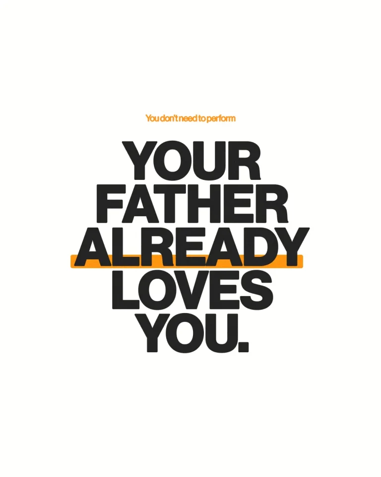 View All Access PlansBold black typography with a pop of orange highlight delivers a powerful message in this sermon series graphic: “You don’t need to perform—Your Father already loves you.” Perfect for teaching series visuals, social media encouragement, or church announcement slides, this design makes core truths stand out. Build trust and connection with impactful church media that speaks directly to hearts.